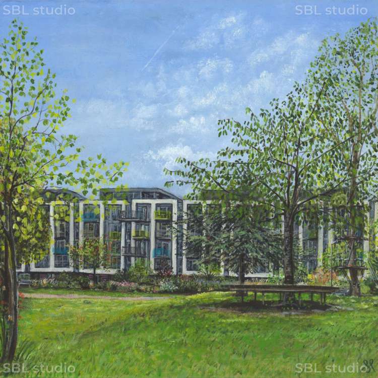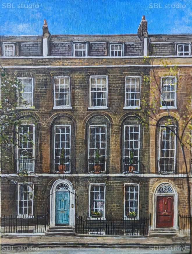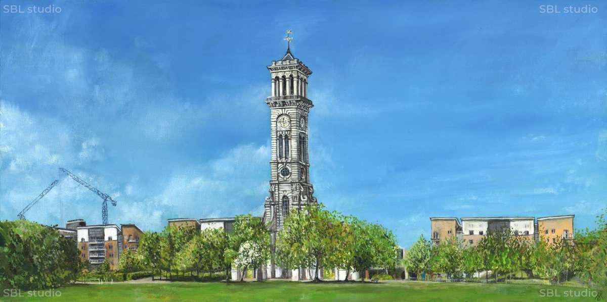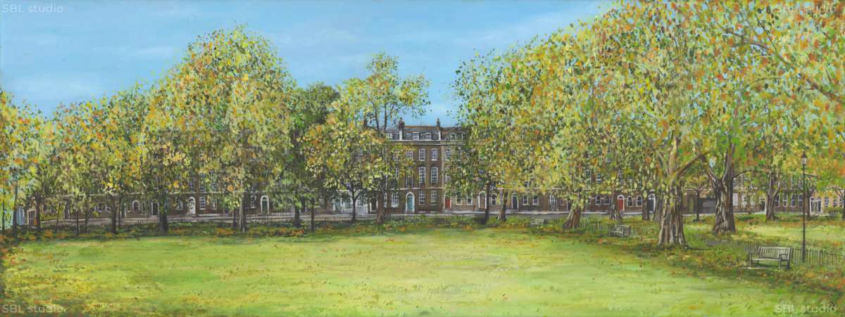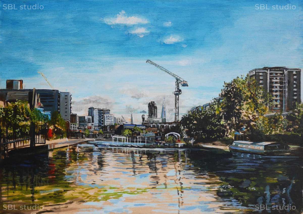 In Sarah’s ‘Urban landscapes’ she seeks places where there is harmony between the integration of nature alongside metropolitan regeneration. Regent’s Canal, London is currently a favoured spot that she regularly returns to. Meticulously painted, these intimate paintings bear witness to the extraordinary transformation of a once underused postindustrial space to a thriving vibrant cultural hub. Always painting in situ, Sarah aims to capture fleeting beautiful moments in the city’s constantly shifting skyline immortalised onto canvas.